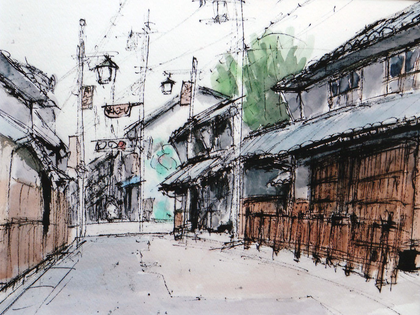 年も変わり、深町こころさんのかわいいイラストから、雰囲気一転、みんなが見慣れた三田のまちを枯れたタッチの葦ペンで美しく再現してくれるのは、葦の会代表中西征雄さんです。神戸や大阪でも活躍され、三田でいくつもの絵画グループを率いる今最も”のってる”画家さんです。中西さんの油彩画も数点展示されてますが、さすがに上手い。どれも気品のある作品です。2月5日まで展示してます。是非、ごらんあれ!